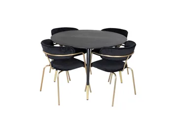 Estelle Matgrupp 106 cm Rund med 4 Polar stolar, Svart/Guld