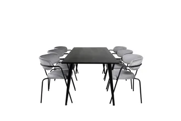 Dipp Matgrupp 180 cm Rektangulär med 6 Arrow stolar, Svart/Guld