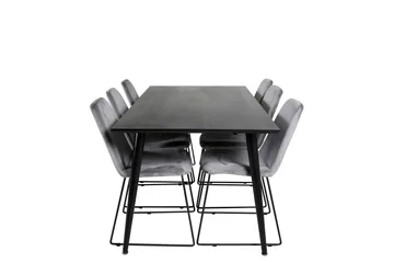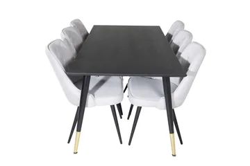 Dipp Matgrupp 180 cm Rektangulär med 6 Velvet stolar, Svart/Guld