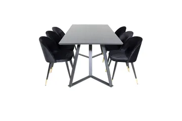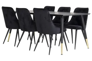 Marina Matgrupp 180 cm Rektangulär med 6 Velvet stolar, Svart/Guld