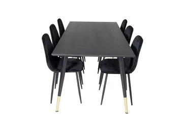 Dipp Matgrupp 180 cm Rektangulär med 6 Polar stolar, Svart/Guld