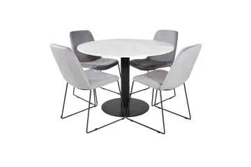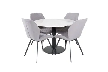 Dipp Matgrupp 115 cm Rund med 4 Velvet stolar, Svart