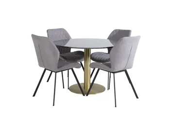 Estelle Matgrupp 106 cm Rund med 4 Gemma stolar, Svart/Guld