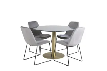 Dipp Matgrupp 115 cm Rund med 4 Muce stolar, Svart/Guld