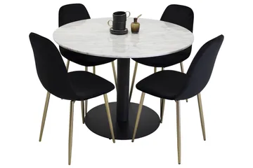 Dipp Matgrupp 115 cm Rund med 4 Polar stolar, Svart/Guld
