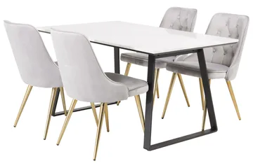 Estelle Matgrupp 140 cm Rektangulär med 4 Velvet stolar, Svart/Guld