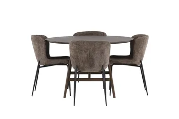 Yakidon Matgrupp 120 cm Rund med 4 Zeno stolar, Brun
