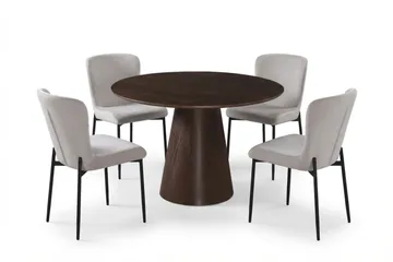 Siena Matgrupp runt 110 cm Valnöt med 4 Elsie Matstolar, Valnöt/Brun