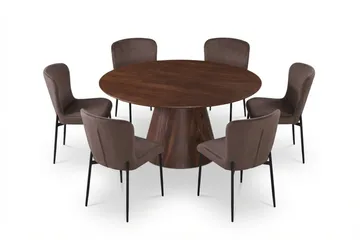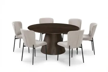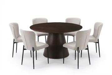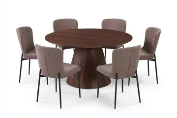 Siena Matgrupp runt 150 cm Valnöt med 6 Elsie Matstolar, Valnöt/Brun