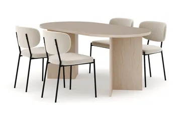 Uppveda Ovalt Matbord 180x90 cm med 4 Sawako Greige Stolar, Travertin/Greige