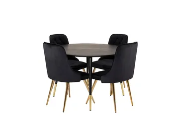 Dipp Matgrupp 115 cm Rund med 4 Polar stolar, Svart/Guld
