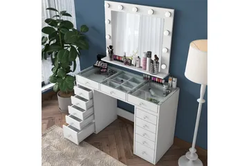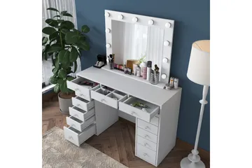 Novaj Sminkbord Med förvaring 55 cm djup 120 cm bred, Vit / Mässing Handtag