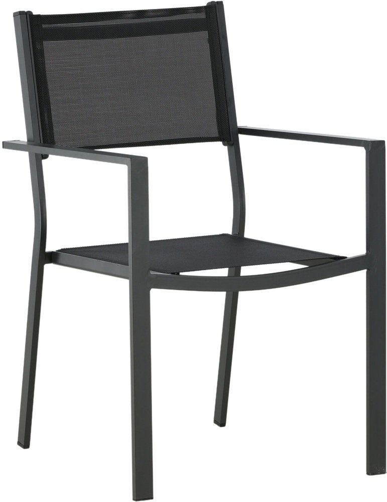 Ge din uteplats eller altan ett lyft med denna matgrupp i stilren svart och naturton. Det stora matbordet på 205x90 cm har en slitstark bordsskiva i naturfärgad polywood och ben i svart aluminium, en tålig kombination som står emot väder och vind. Med sex stapelbara stolar i svart aluminium och vädertålig textilene skapas en funktionell och snygg matplats som passar lika bra för sommarens vardagsmiddagar som festliga grillkvällar.