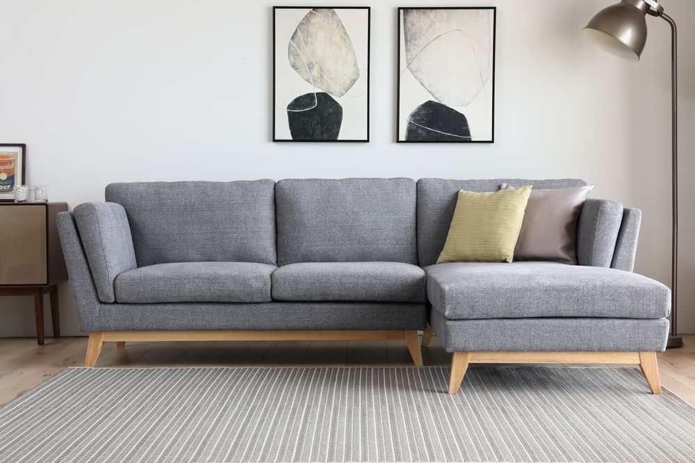 Soffa med divan grått tyg - 260 cm bred + Rengöring för möbler