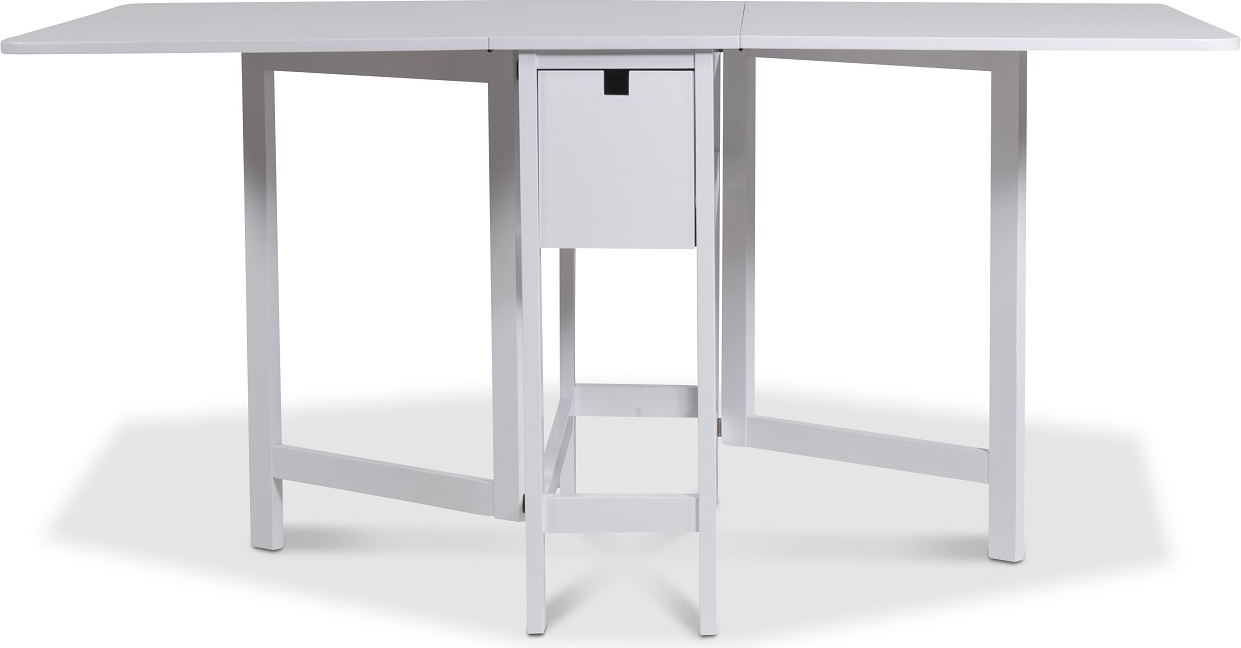 Sandhamn matgrupp Klassiskt utförande. Stilrent klaffbord med 4 st matchande Sofiero stolar klädda i grått tyg och kryss i ryggen.