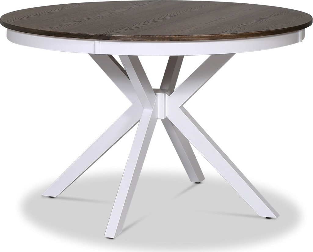Skagen matgrupp; runt matbord Ø120 cm - Vit / brunoljad ek med 4 st Skagen stolar (Ribbor i ryggen) med brunoljad eksits