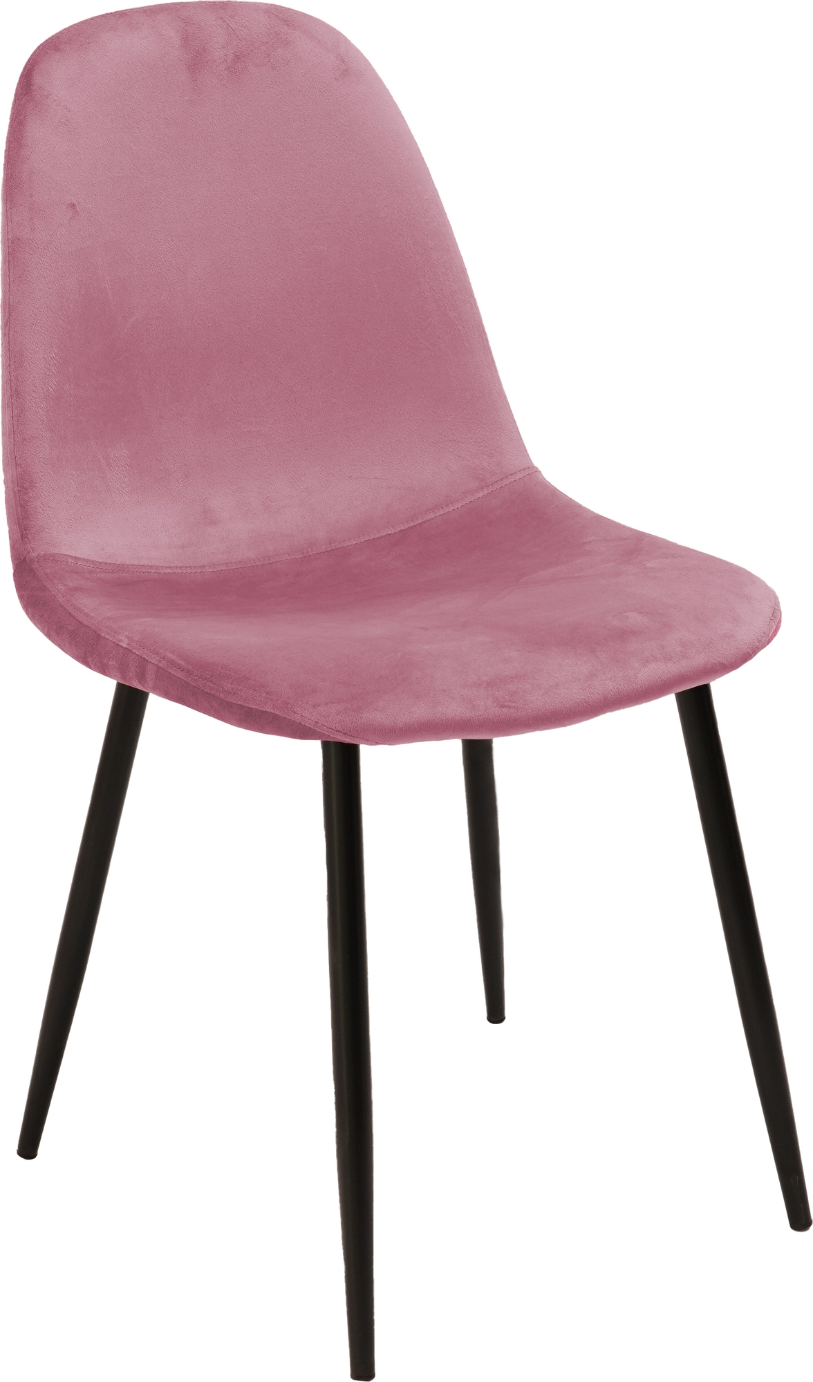 Matgrupp från Skånska Möbelhuset, Smokey matbord 120 cm i diameter med mdf-toppskiva med ljus betsad ekfoliering. Medföljer 4 st matchande Carisma sammetstolar i korallrosa sammet med svarta ben.