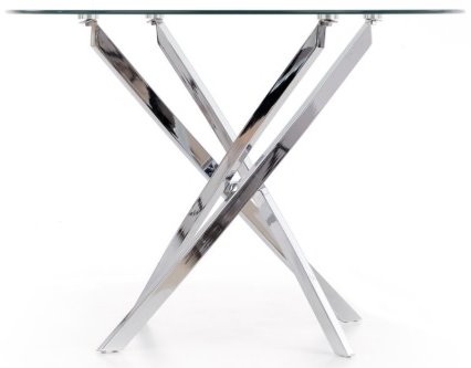 Snyggt matbord med en modern design. Underredet är tillverkat i kromad metall och toppskivan är av klarglas.