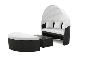 Florens Rund dubbel Solsäng med tak - Soffbord med glasskiva i konstrotting, Grå