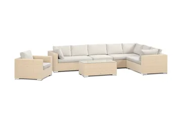 Bahamas utomhus hörnsoffa 8-sits vändbar med fåtölj och bord, Beige