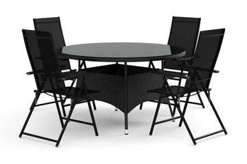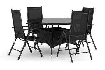 Thor utomhus rund matgrupp 140 cm med 4 positionsstolar, Svart