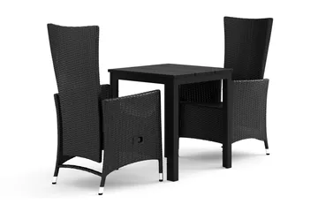 Tunis utomhus caféset 70x70 cm med 2 Monaco Light positionsstolar, Svart/Svart