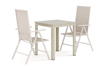 Tunis utomhus caféset 70x70 cm med 2 Maggie positionsstolar, Vit/Grå