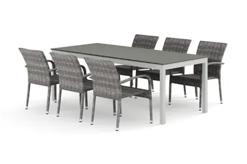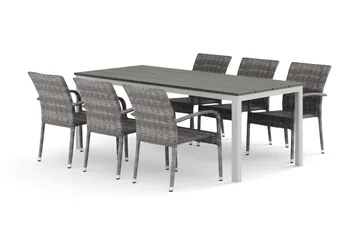 Tunis utomhus matgrupp 205x90 cm med 6 Jenny matstolar, Vit/Grå