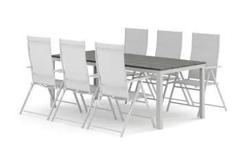 Tunis utomhus matgrupp 205x90 cm med 6 positionsstolar, Vit/Grå