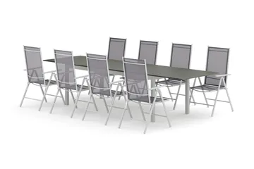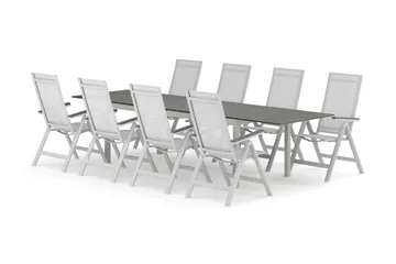 Tunis utomhus matgrupp förlängningsbart 205/305x90 cm med 8 Thor Light utefåtöljer, Vit/Grå