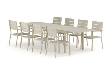 Tunis utomhus matgrupp förlängningsbart 205/305x90 cm med 8 Tunis stapelstolar, Beige/Beige