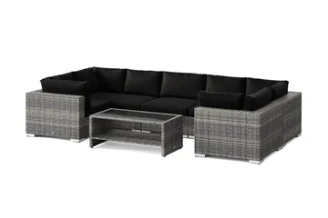 Bahamas L-formad utesoffa höger, 7-sits med bord, Svart