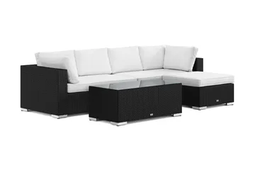 Bahamas utomhus divansoffa 5-sits med vändbar divan och bord med hylla, Svart